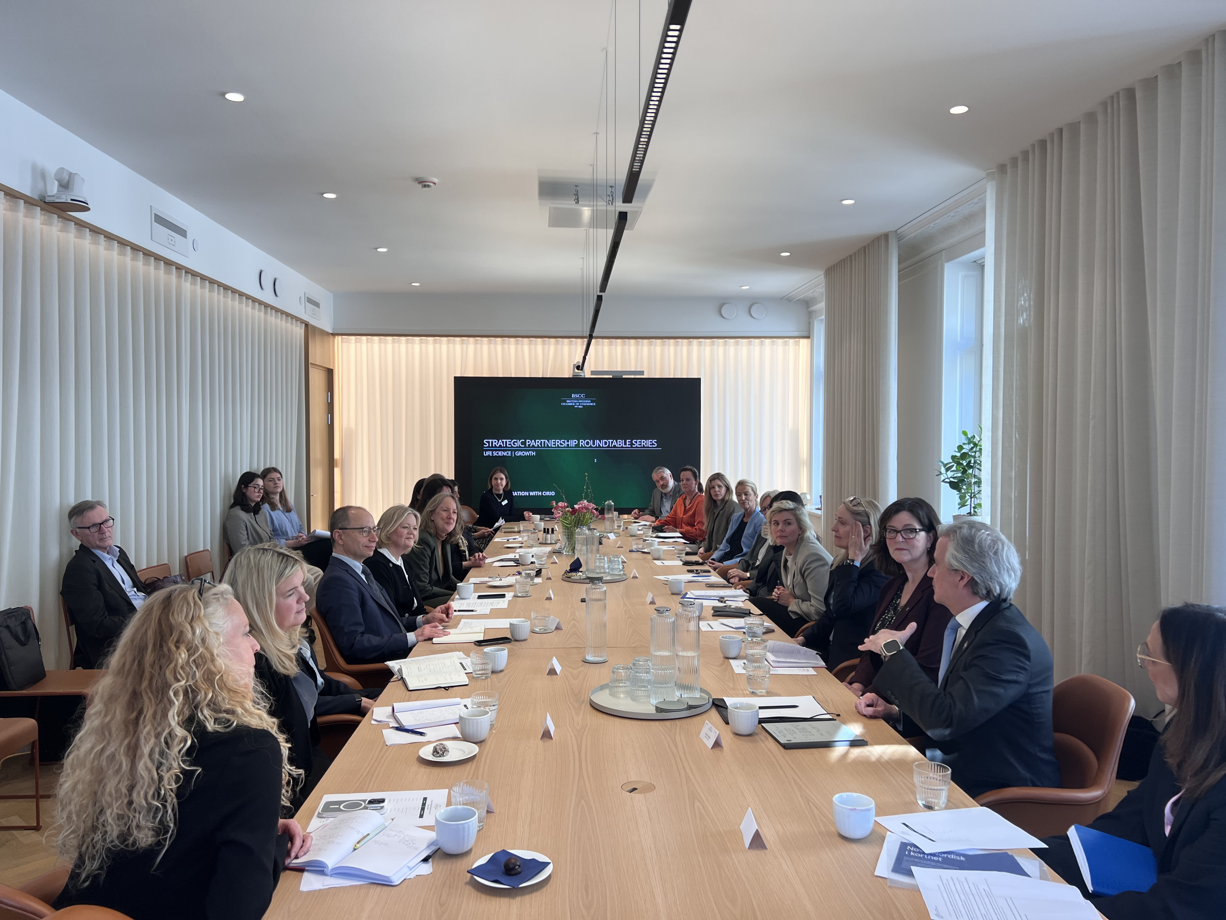 On march 12, we were delighted to host our second Life Science roundtable as part of the Strategic Partnership Roundtable Series, this time focused on growth. Our keynote speakers included Samantha Job British Ambassador to Sweden, Carolina Lindholm, State Secretary to the Minister of Finance and Aida Birinxhiku, Member of the Riksdag. We were also joined by stakeholders from the life science industry, policy organizations, and the broader innovation ecosystem.